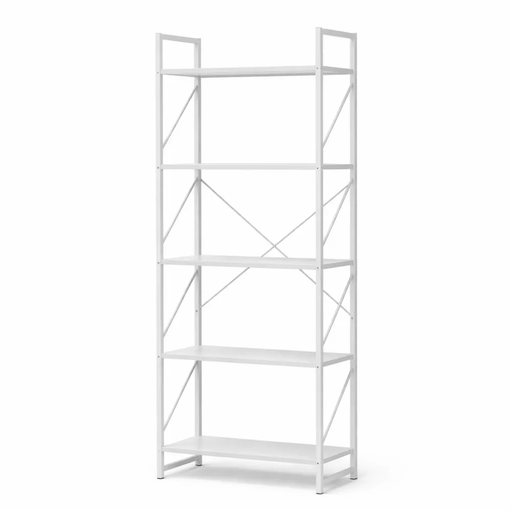 Dieses Bücherregal bietet eine Vielzahl von Stilen mit einem modernen Design. Die offene Struktur ermöglicht eine Präsentation in alle Richtungen. Geeignet für Bücher, Fotoalben, Topfpflanzen und mehr. Das Regal wird aus Holzbohlen und einem Metallrahmen hergestellt. Rückseitige X-Streben sorgen für Stabilität.