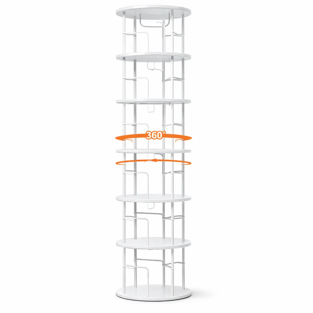 Hölzernes drehbares Bücherregal mit 6 verstellbaren Ebenen in Weiß, 193cm