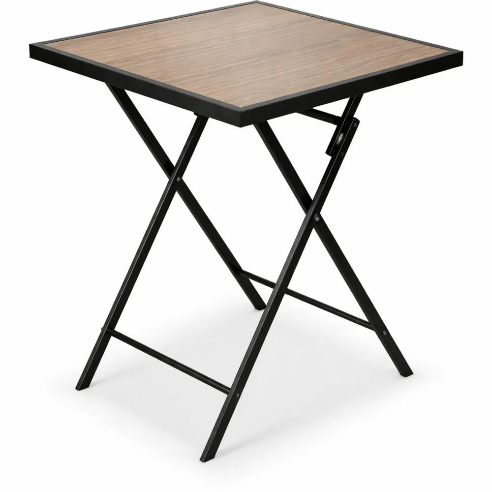 Langlebiger Gartentisch mit Metallgestell und Kunststoffplatte für Nutzung im Freien. Klappbar und leicht zu verstauen, geeignet für Balkone, Terrassen und Camping. Pulverbeschichtetes Metall und wetterfeste Platte bieten Schutz vor Witterungseinflüssen. Quadratische Tischfläche von 58 x 58 cm. Zusammengeklappt spart er Platz. Trägt bis zu 90 kg. Modernes Design mit Stein- oder Holzoptik in Grau.