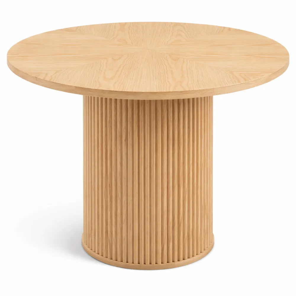 Runder Esstisch mit einem Durchmesser von 100 cm, geeignet für 4–6 Personen. Dieser Tisch bietet Platz für Familienessen und gesellige Abende, passend für kleine Essbereiche.